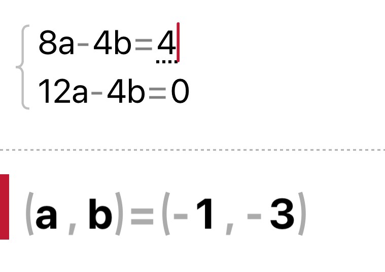 Okej efter att ha satt in en tvåa istället för en trea så får jag att a=-1.5 och b=-4.5