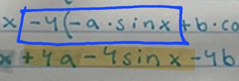 Det ska bara vara +4a*sinx ?