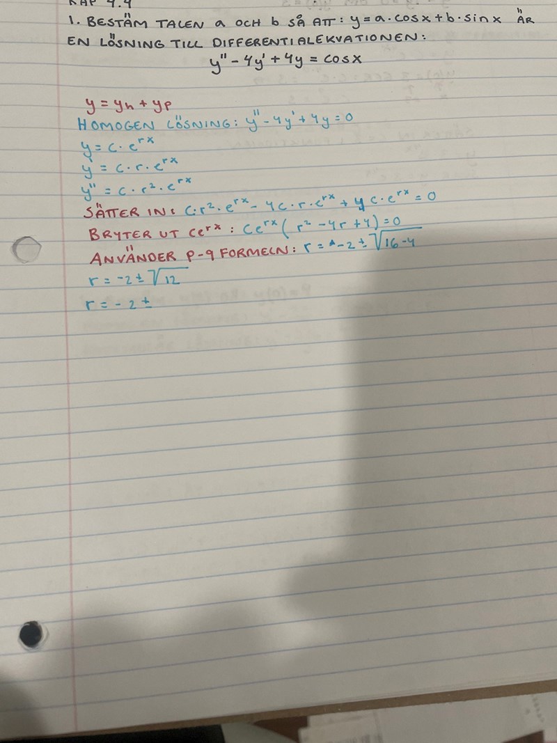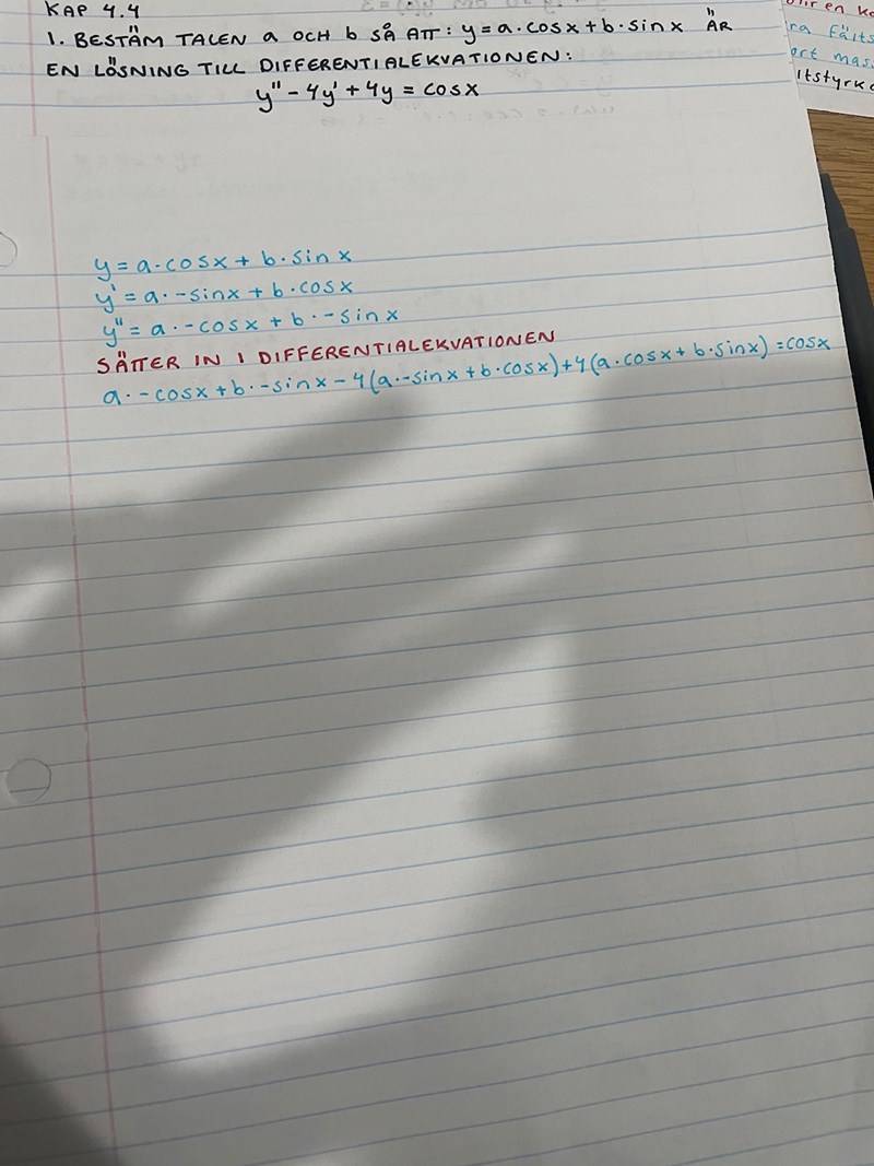 Du har fått lösningen given, sånär som på konstanterna a och b.