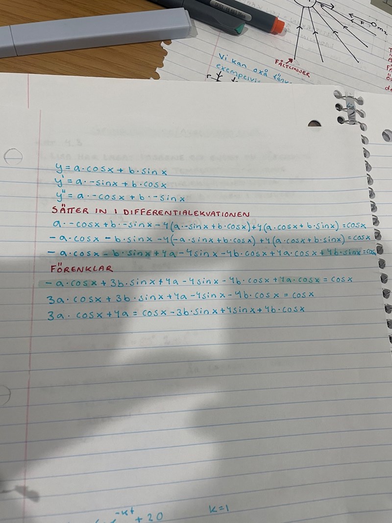 Slutligen: Sätt in dessa värden i diffekvationen och se att det stämmer.