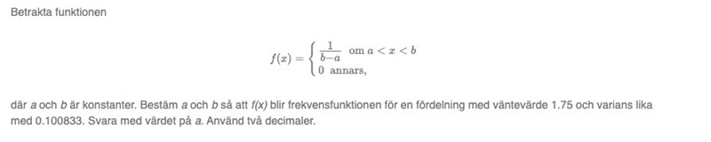Bestäm a och b så att f(x) blir frekvensfunktionen för en fördelning