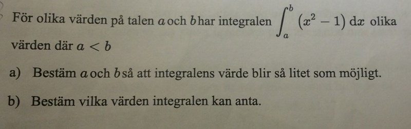 Bestäm a och b så att integralens värde blir så litet som möjligt