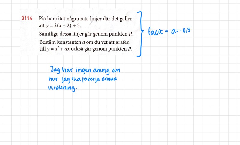 Bestäm ”a” om grafen till y=x^2+ax OCKSÅ går genom punkt P