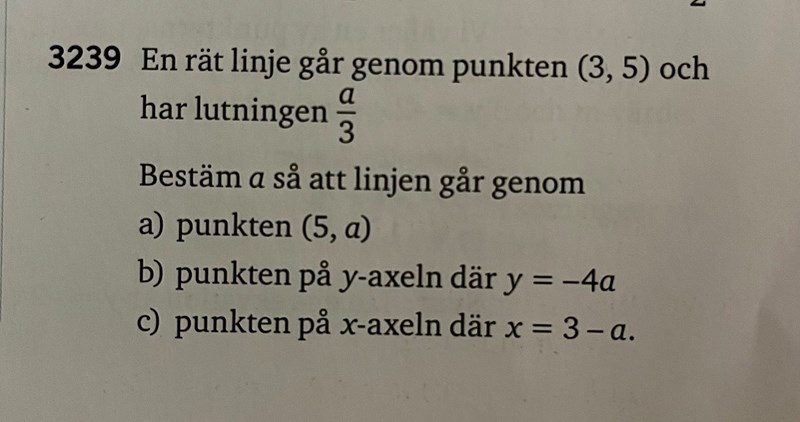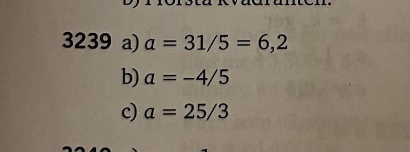 Facit är fel. Testa stoppa in 6.2 i a/3 och sen räkna ut lutningen utifrån dom punkter du har, då ser du att du får olika svar.