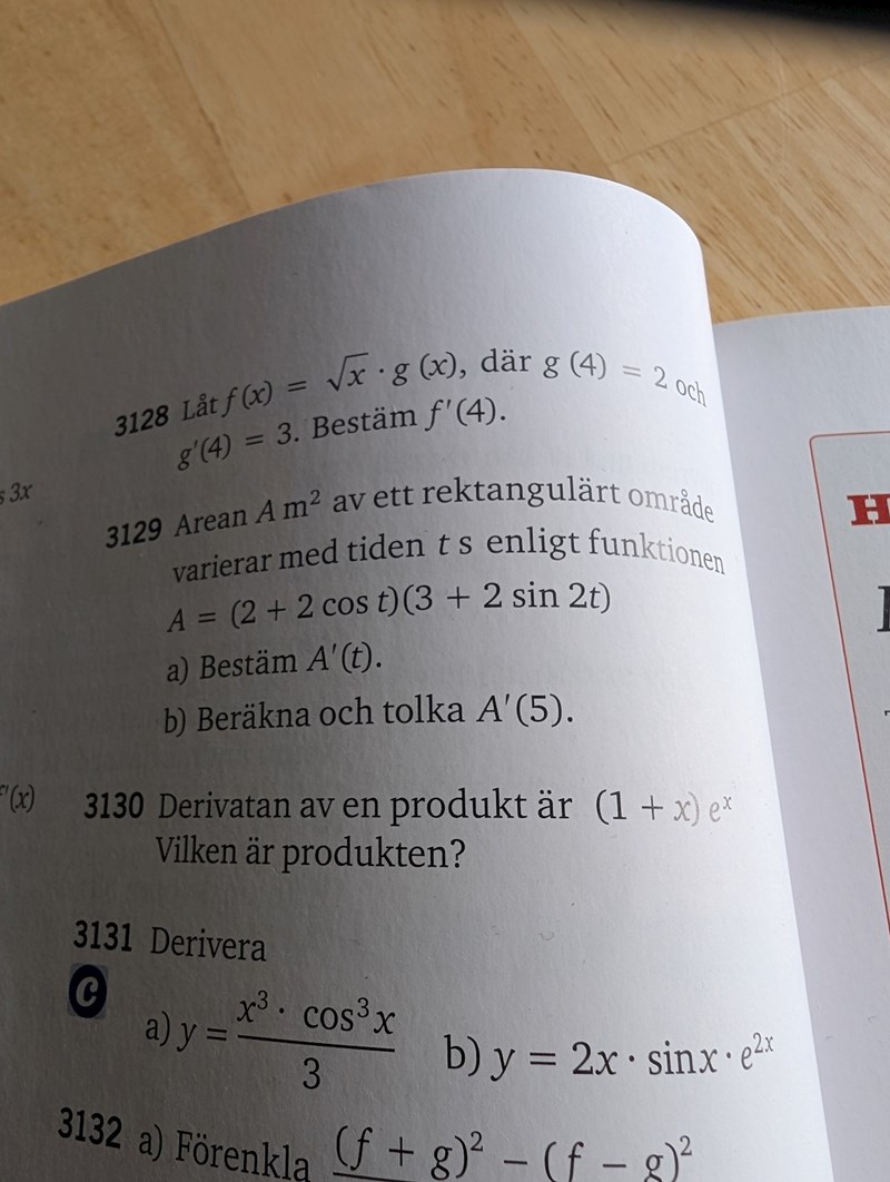 Uppgift 3129 A.. behöver hjälp med den. Jag vet inte hur man deriverar det.