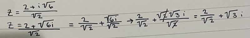 Jag har gjort om z så långt jag kan men hur fortsätter jag? Jag antar att jag måste få bort nämnaren för att sen kunna ta Pythagoras sats för att få fram absolutbeloppet av z?!