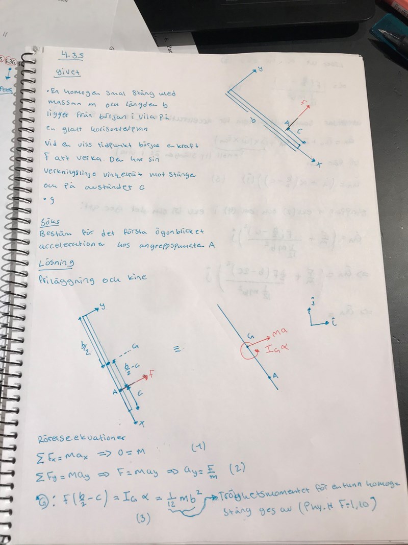 Bestäm accelerationen vid A