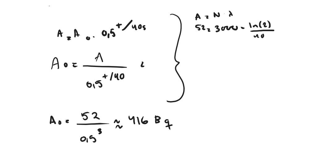 Enligt facit så ska svaret blir 500Bq men jag får endast 416Bq tror du att de har avrundat grovt i facit eller har jag tänkt fel?