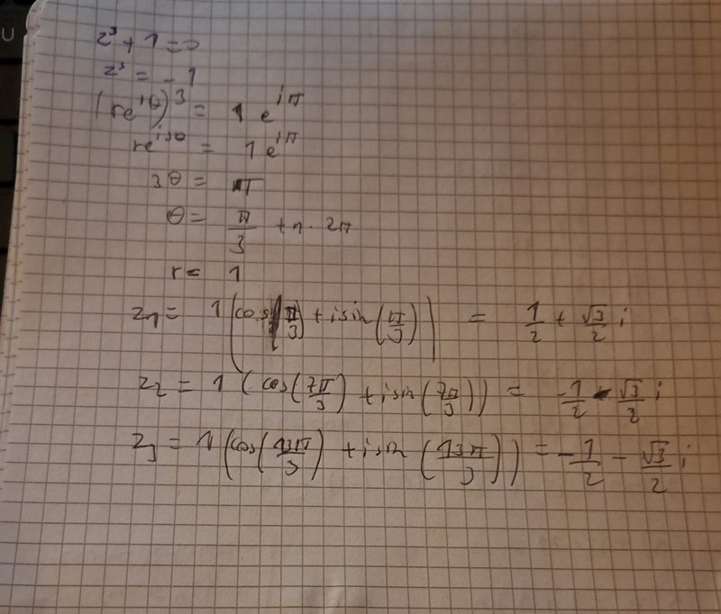 men om vi har z= (-1)^(1/3)=-1. Jag förstår ej vilka komplexa lösningar du uppfann och hur du uppfann dem.
