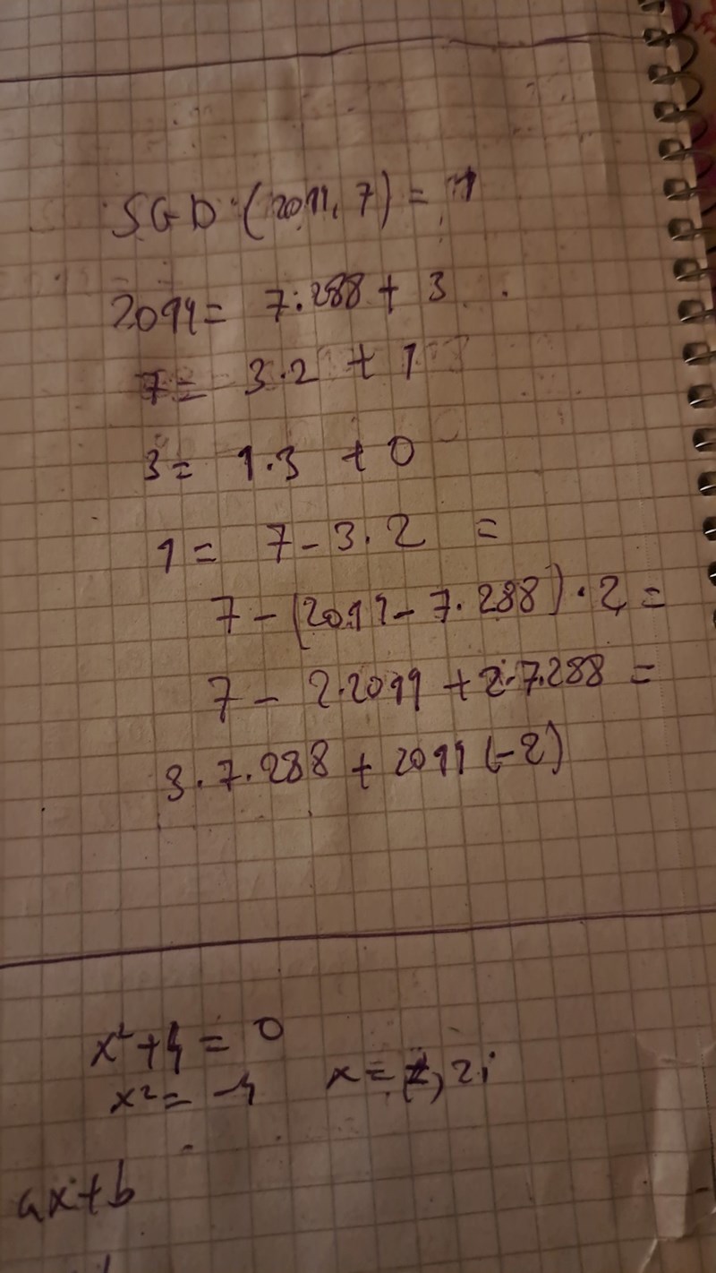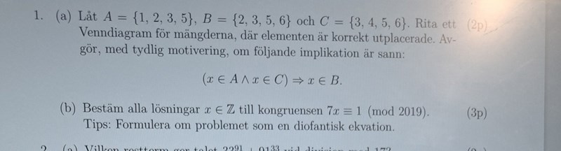 Jag försöker hitta SGD(2019,7) för att kunna lösa 1b) men kommer ej längre än den uppställningen mha euklides algoritm.