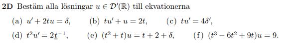 Bestäm alla lösningar u ∈ D′ (R) till ekvationerna: