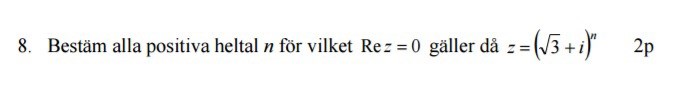 Bestäm alla positiva heltal n för vilket Re z = 0..