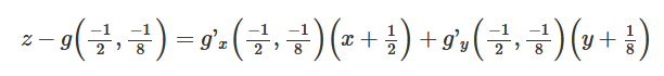 Om du betraktar ekvationen som en funktionsyta , där , så får du att är en normalvektor. Ur ekvationssystemet som tidigare får du att , är - och -koordinaterna för tangeringspunkten. Då kan tangentplanet skrivas på formen av "förstaordningens taylorutveckling":