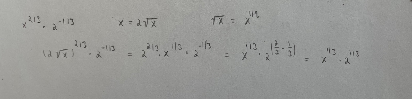 Här började jag med att sätta in x och får fram x1/3*21/3 men vad gör jag nu?