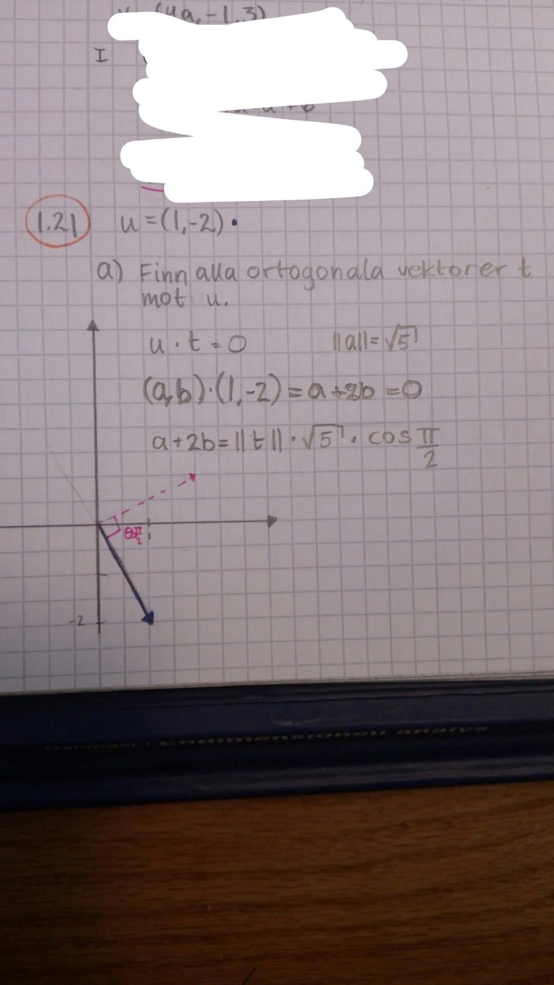 " Låt u=(1,-2). Bestäm alla vektorer som är ortogonala mot u." Linjär algebra, Kapitel 1: Vektorer