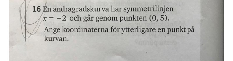 Ja, och denna andra punkt har du funnit genom att spegla den givna punkten i symmetrilinjen. Mer än så vet vi inte om kurvan. Är du med på det?