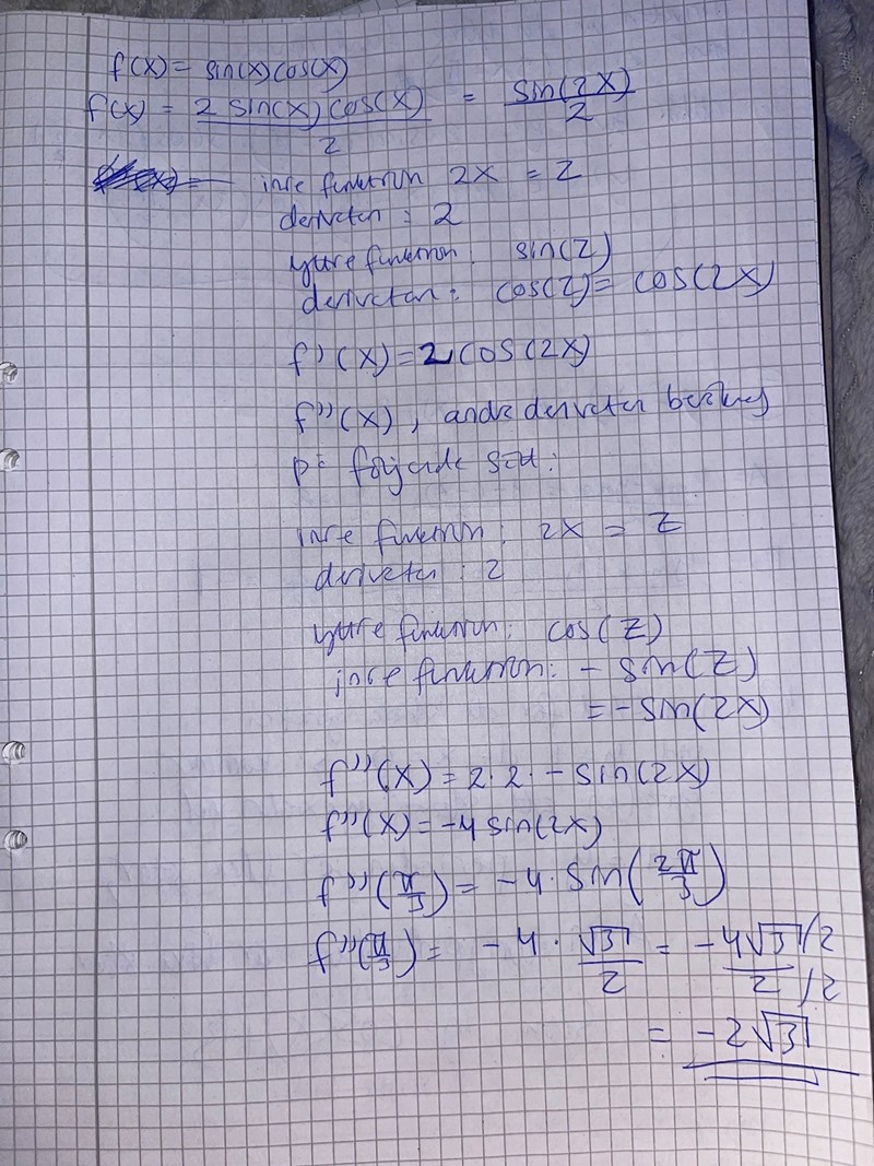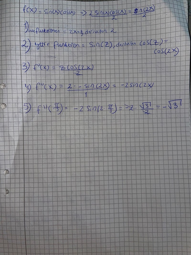 Förstaderivatan ska vara f'(x) = cos(2x)