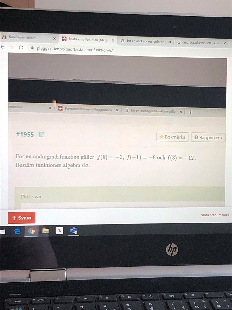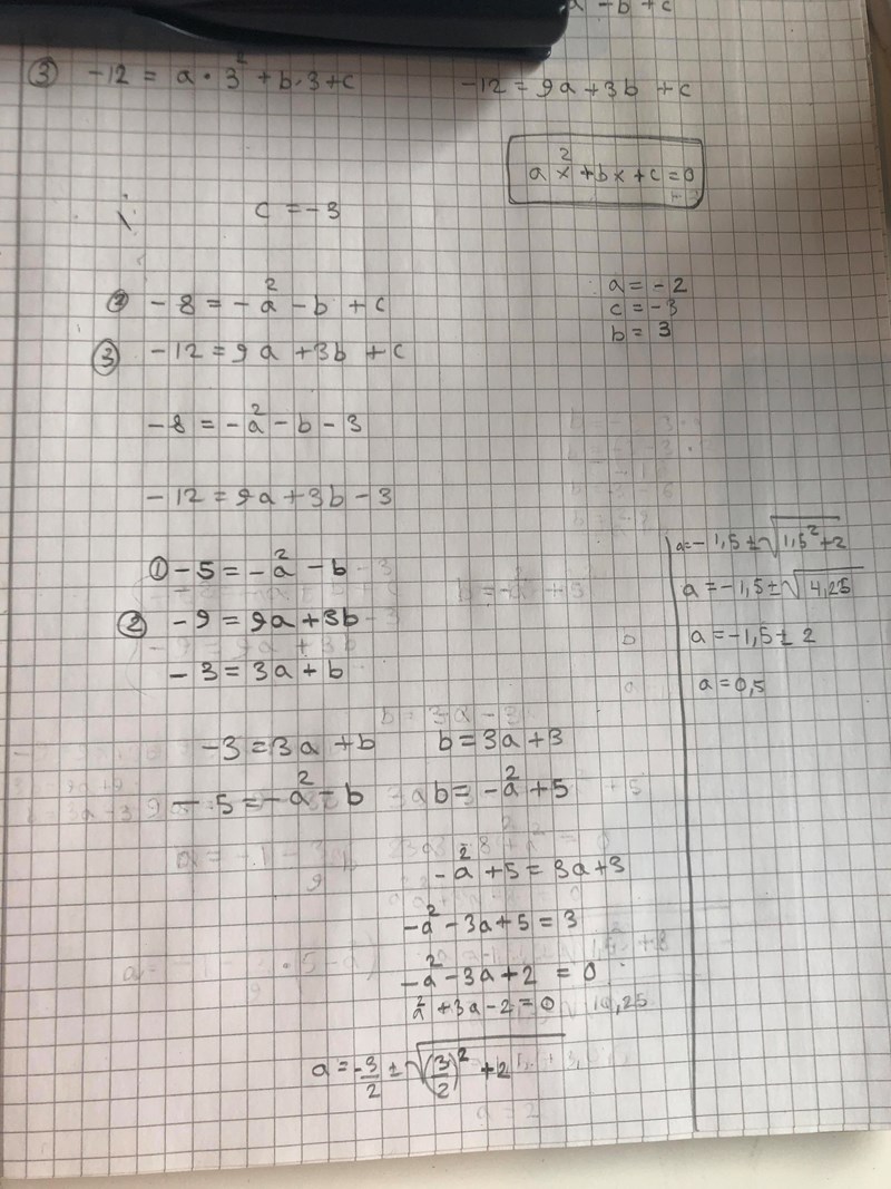 -8 = -a^2 -b -3      är fel,  det är inte a b c som är i kvadrat, det x-värdet som är i kvadrat