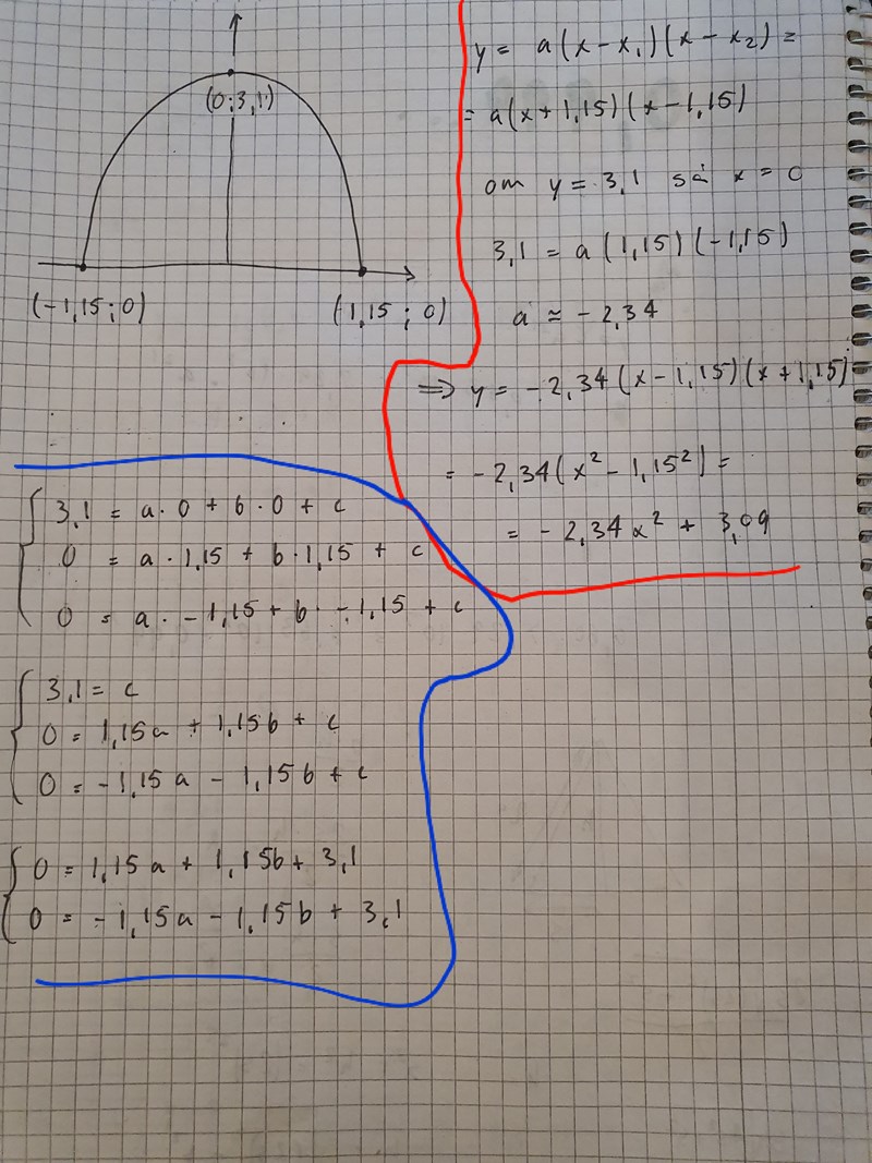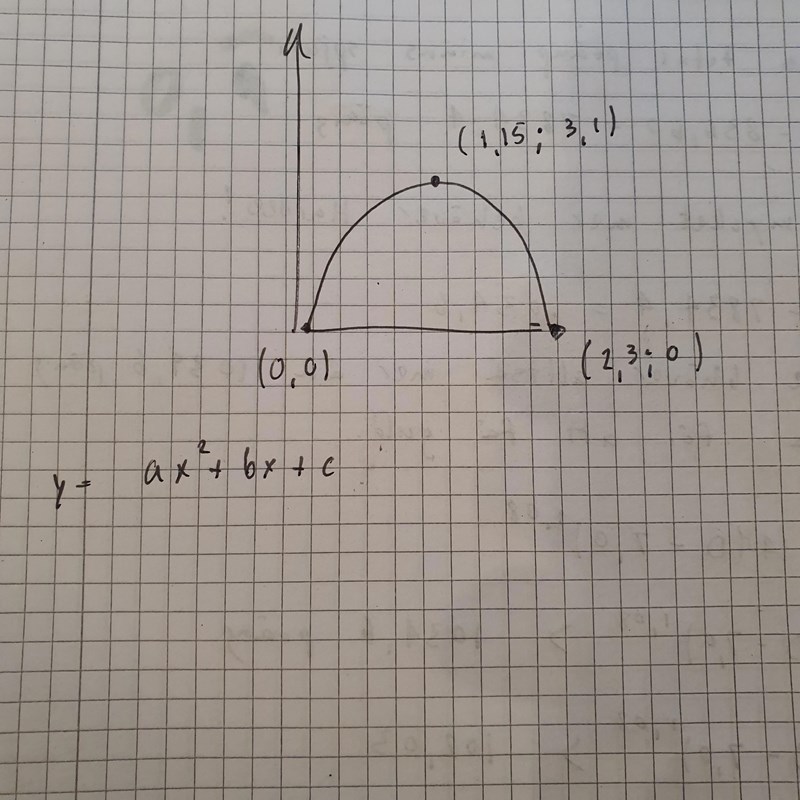 Så y=ax^2+bx+c blir y=-2,34x^2+3,1