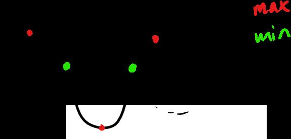 Jag tänker att de röda uppe är C och D och den röda nere är maximi punkten mellan de. De gröna är därför minimipunkterna