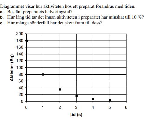 För att få totala antal sönderfall kan du beräkna arean under kurvan.
