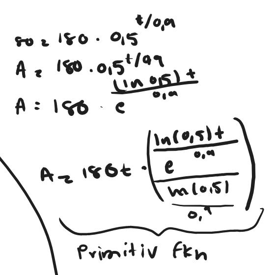 F(t) = 180x * (e(ln(0,5)t)/0,9)/((ln(0,5)t)/0,9) = 0.9*0,5t/0,9/(ln(0,5)t)