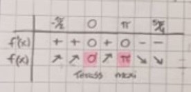 Om du menar att derivatan f'(x) endast har nollställen vid x = 0 och x = pi så håller jag med dig.