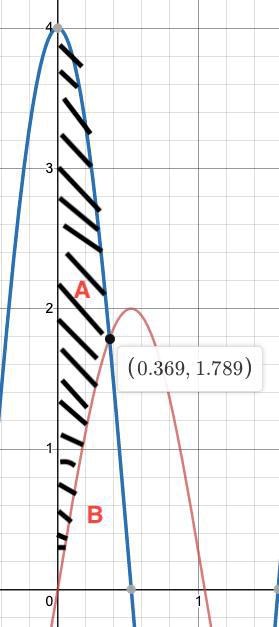 Området A efterfrågas. Jag ska alltså lösa intergralen för A+B och sedan ta minus integralen för B.