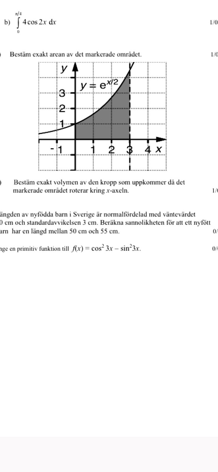 Oh ja såg nu att du läste matte 4 :D. du ska först hitta primitiva funktionen till 4cos2x och sen räkna arean. Det svåra där är att hitta primitiva funktionen till f(x)