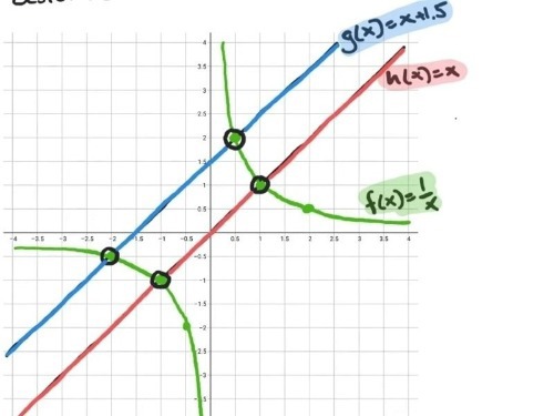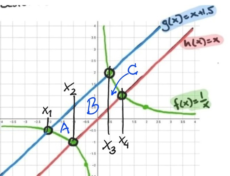 - Du får fram x2 och x4 genom att lösa ekvationen f(x) = h(x)