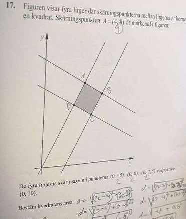 jag har ska bestämma arean av denna kvadrat men vet ej riktigt hur jag ska göra