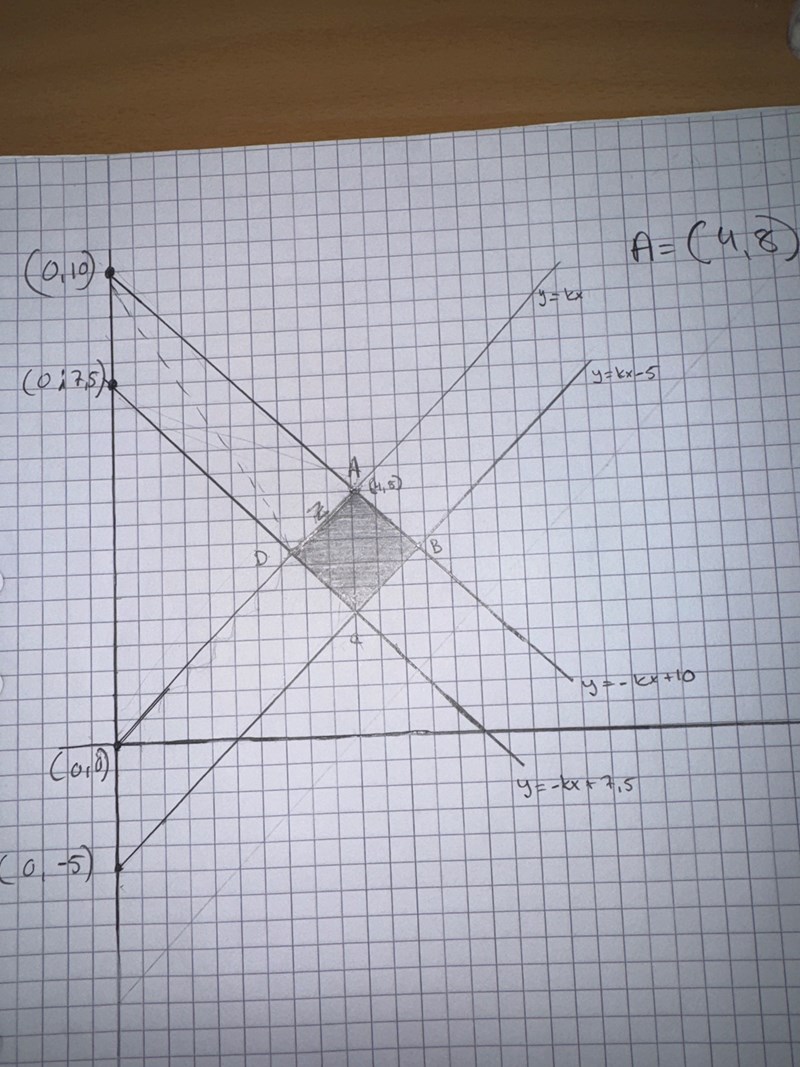 y=kx , y=kx-5 , y=-kx+10 och y=-kx+7,5 är INTE korrekta, Dem angavs inte i uppgiften som vi fick, utan jag skrev in dem själv och hittade på dem, förlåt för förvirringen!! borde varit tydligare med det
