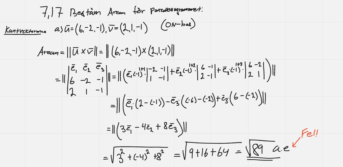 Laguna skrev:Du skriver förvisso kantvektorerna u och v, men kan det vara så att en av dem är en diagonal i stället?