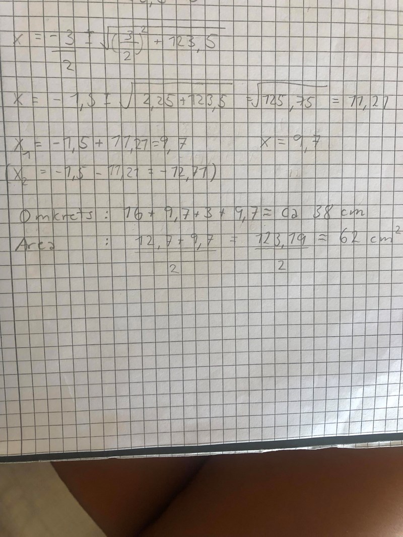 Jag får rätt omkrets, ca 38 cm står det i facit.