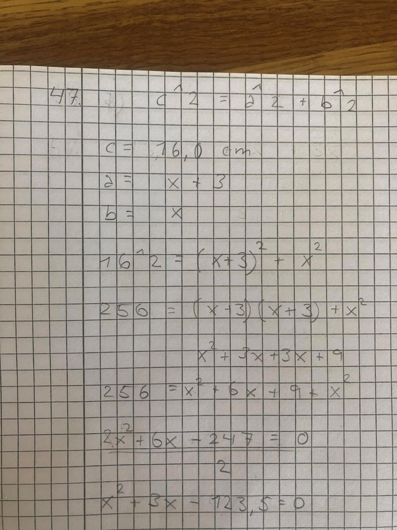I din lösning är den ena kateten ungefär 6 cm längre än den andra, inte 3 cm som det borde vara.