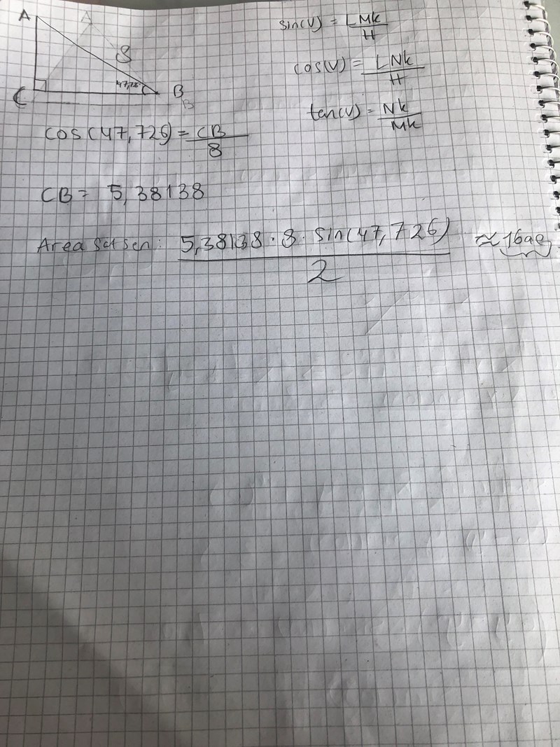 Arean är som du vet AC*BC/2 vilket kommer bli 3520/221