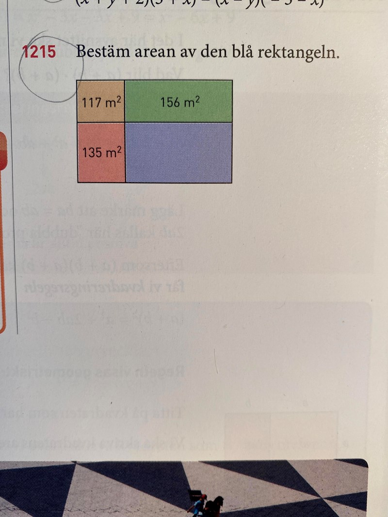 uppgiften lyder i översta bilden: ”bestäm arean av blå rektangeln”