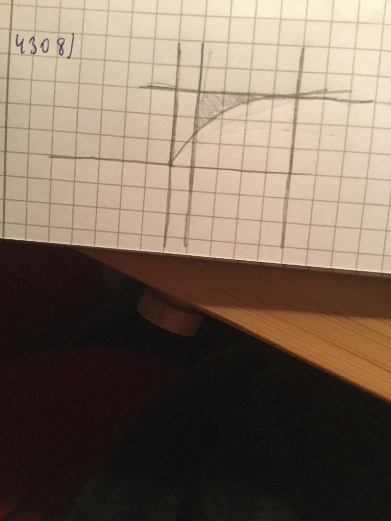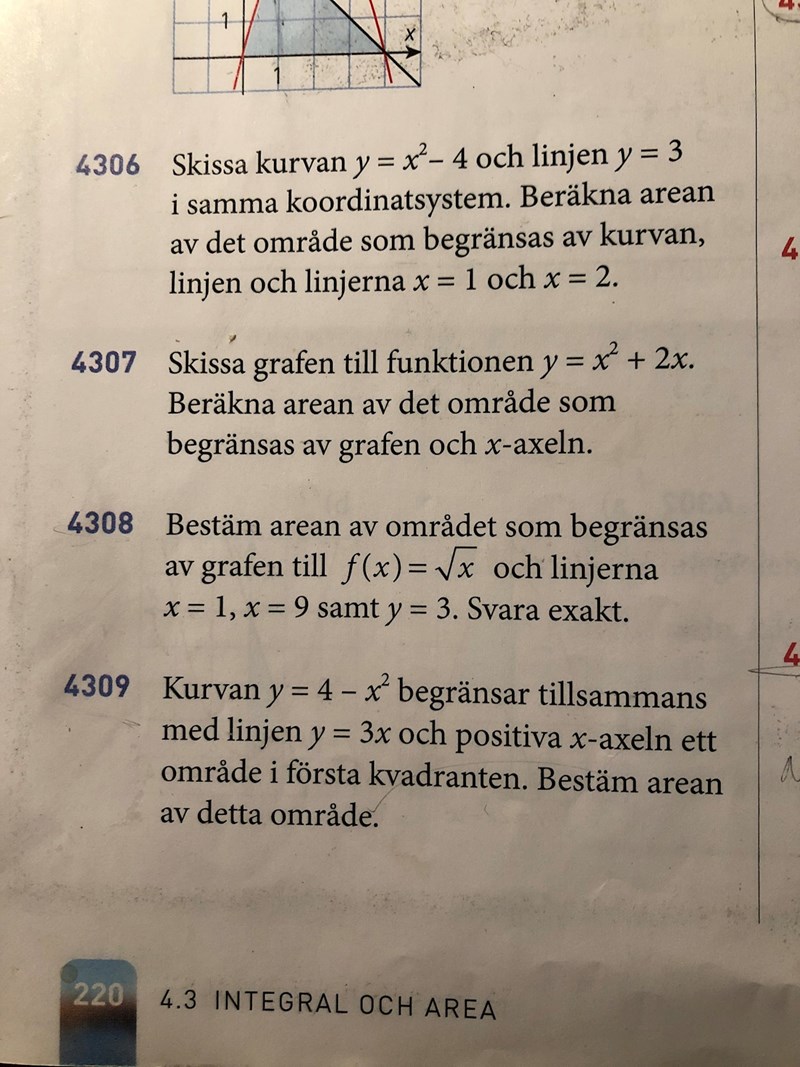 Så man ska vara inte räkna med arean ända ner till x axeln? Jag har nu fyllt i där jag tror man ska beräkna arean. Stämmer det?