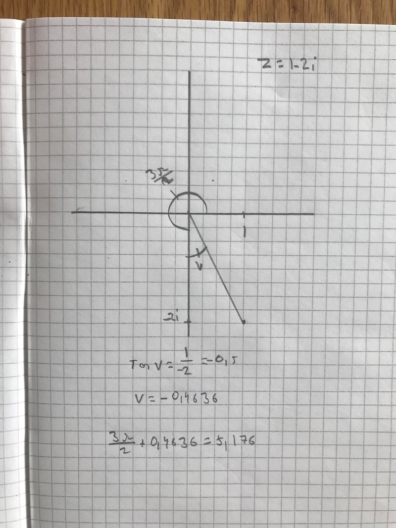 Okej, men borde inte jag ha gjort rätt? Vektorn ska gå till punkten (1,-2i). Vinkeln mellan vektorns start och utgångsläget borde man väl få genom att göra såsom jag gjorde?
