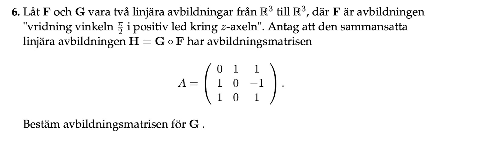 Om du visste matriserna för F och G, som vi kan kalla [F] och [G], hur skulle du då räkna ut matrisen för H (dvs A)?