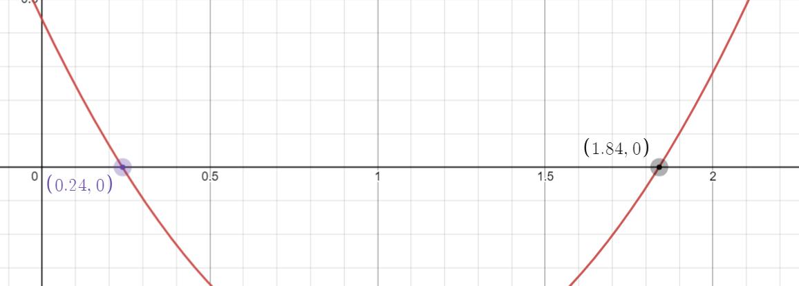 Sätter vi in i Desmos och klicka på nollställena får vi: