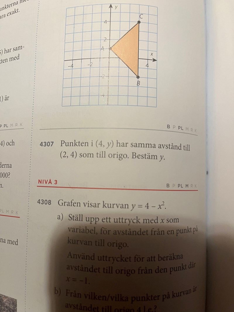 Uppgift 4307. Vet att man ska använda avståndsformeln men vet inte hur man ska ställa upp det riktigt.