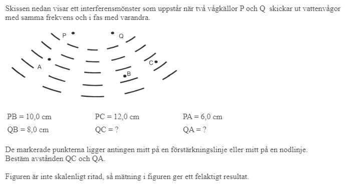 Ja det är rätt, det leder till at våglängden är 2 då den ligger på första topp linjen. Den andra ligger på nod linjen, vilket är en destruktiv linje.
