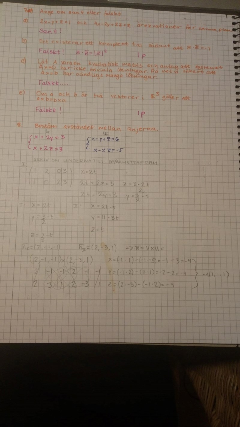 Detta är ett sätt att göra det på addera de båda nu har vi planen och dessa plan har samma normal(tror de heter så).