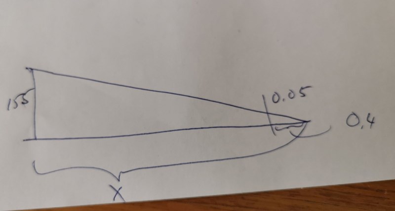 Du kan utnyttja likformiga trianglar för att lösa uppgiften