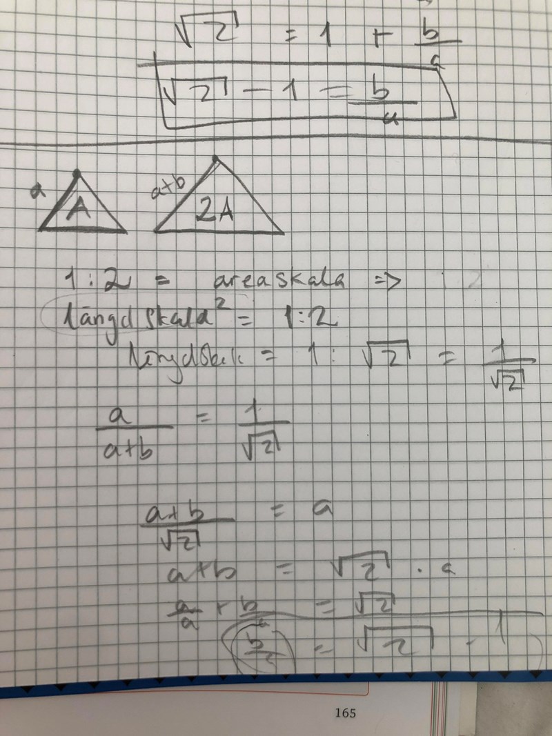 Jag har skrivit ner uträkningen som jag hittade på nätet.. Finns det ngt enklare sätt som man kan lösa uppgiften på? Jag förstår inte hur areaskalan blev (1:2)? Varför ska det inte vara 2:1?
