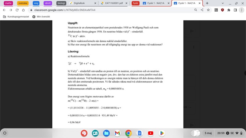 måste bara fråga om man gör på samma sätt vid b- sönderfall? tar man oxå 2*0,00054858?