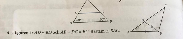 Jag har lyckats identifiera vilka vinklar som är lika stora. Men jag förstår inte vad som menas med bestäm <BAC. Vad menas med ”<” .