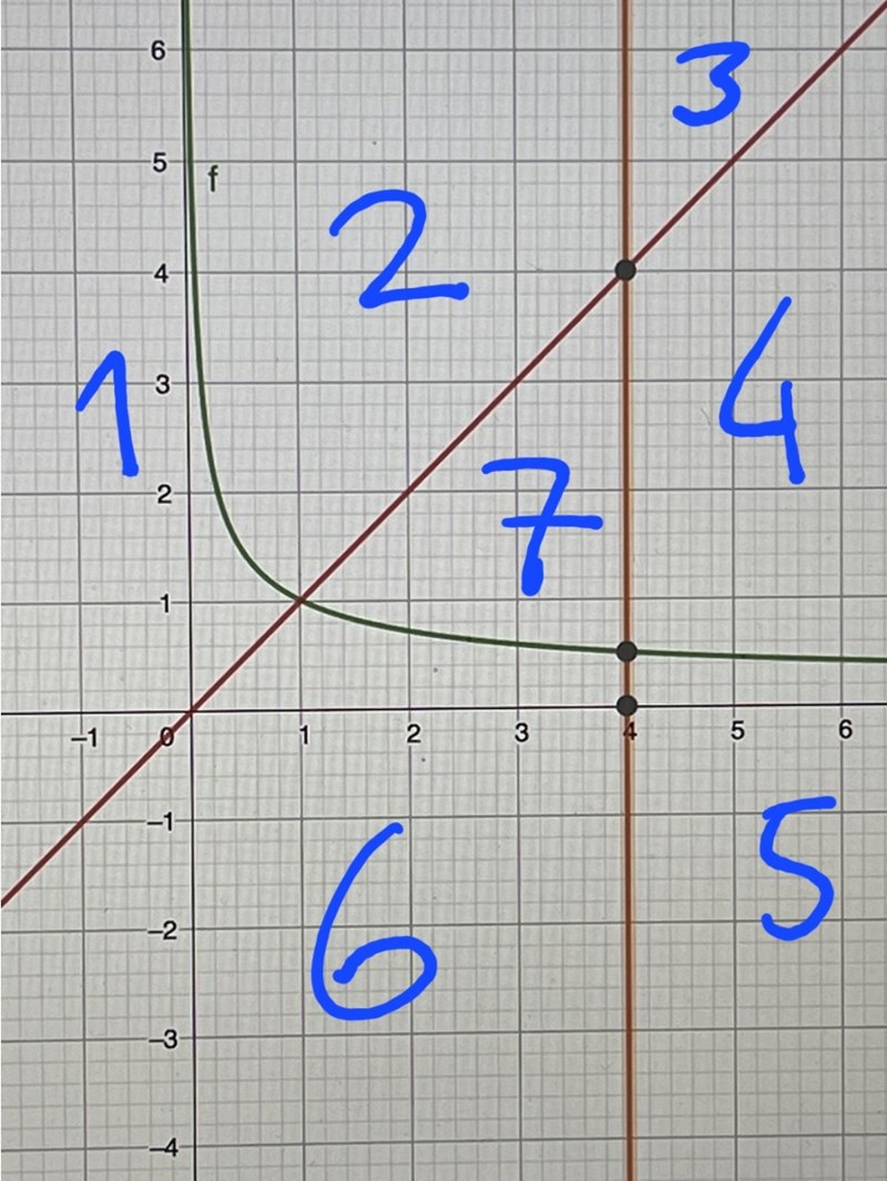 Vilket av dessa 7 områden stängs in av de tre graferna?