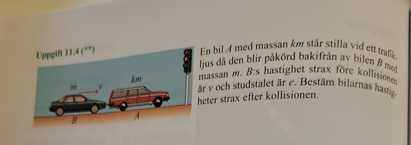 Bestäm bilarnas hastigheter strax efter kollisionen